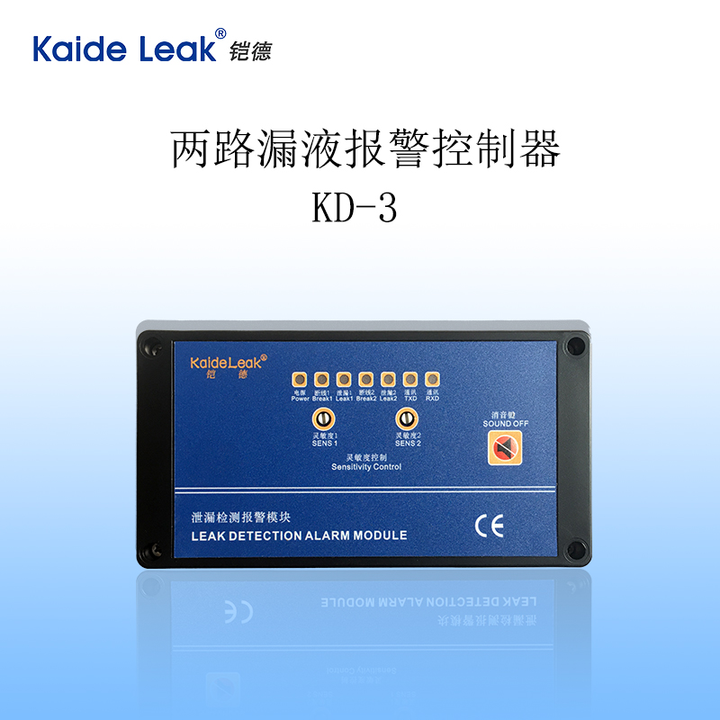 KD-3泄漏检测模块是一款多功能的泄漏检测设备,最长每路可接500米四芯二芯泄漏检测感应线缆,也可兼容其它漏水检测探头,通过其输出的继电器触点信号和RS485通讯功能,实现远程报警及远程设备的控制。